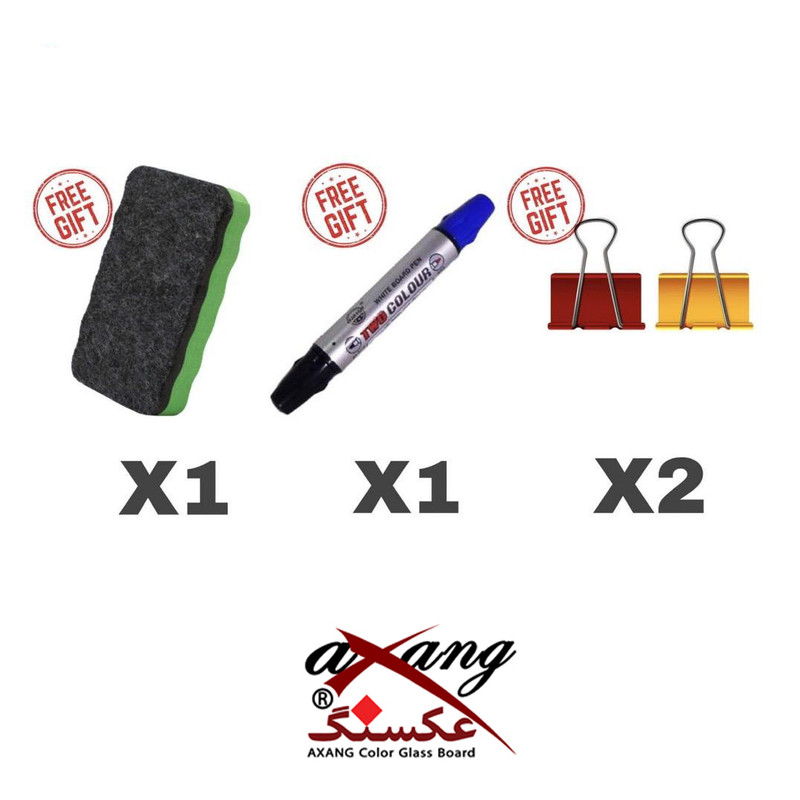 دارای یک عدد ماژیک وایت برد و یک عدد تخته پاک کن و 2 عدد گیره میباشد