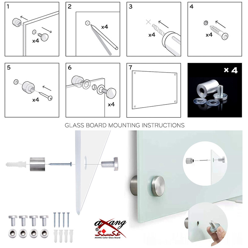 این محصول دارای 4 عدد سوراخ در گوشهها و همچنین 4 عدد فیسکچر گلپیچ و 4 عدد پیچ و 4 عدد رولپلاک مخصوص جهت نصب و یک عدد ماژیک به عنوان هدیه می باشد.